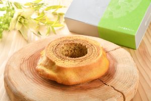 バターと卵の旨味が凝縮された、米粉バウムならではの、ふわふわもっちりな生地が特徴です。 直径約11.5cm×厚み4cm